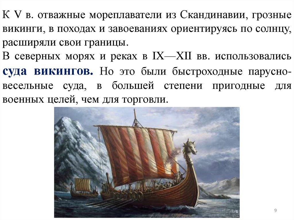 суда викингов. Но это были быстроходные парусновесельные суда, в большей степени пригодные для