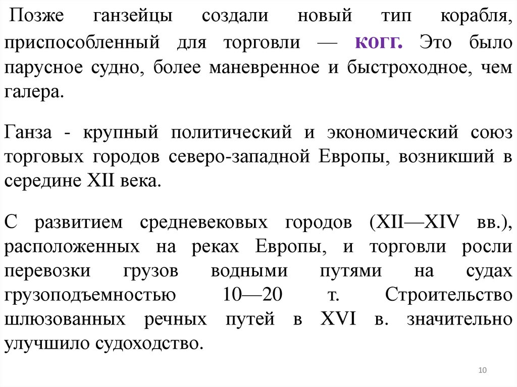 Позже ганзейцы создали новый тип корабля,приспособленный для торговли — когг. Это было