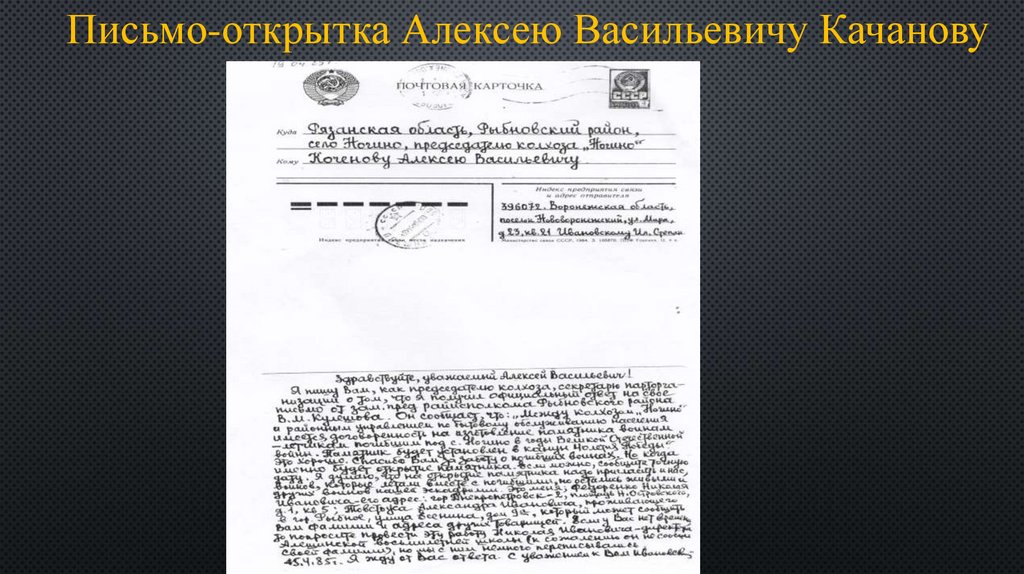 Письмо-открытка Алексею Васильевичу Качанову10.