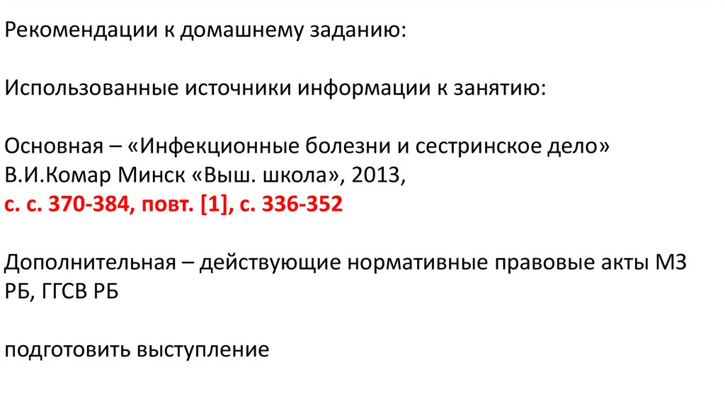 Рекомендации к домашнему заданию:Использованные источники информации к занятию: