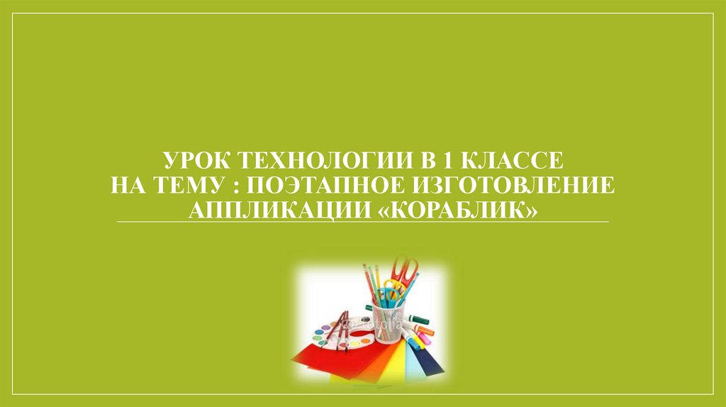 1. Урок технологии в 1 классе на тему : Поэтапное изготовление аппликации «Кораблик»