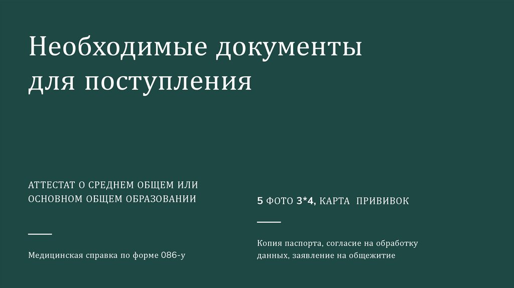 Необходимые документыдля поступления