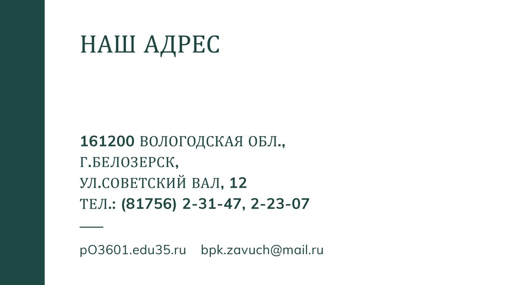 НАШ АДРЕС161200 ВОЛОГОДСКАЯ ОБЛ.,
