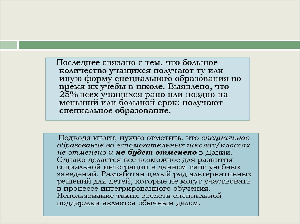 В Дании больше не существует отдельной системыспециального образования, а имеется сеть различных типов