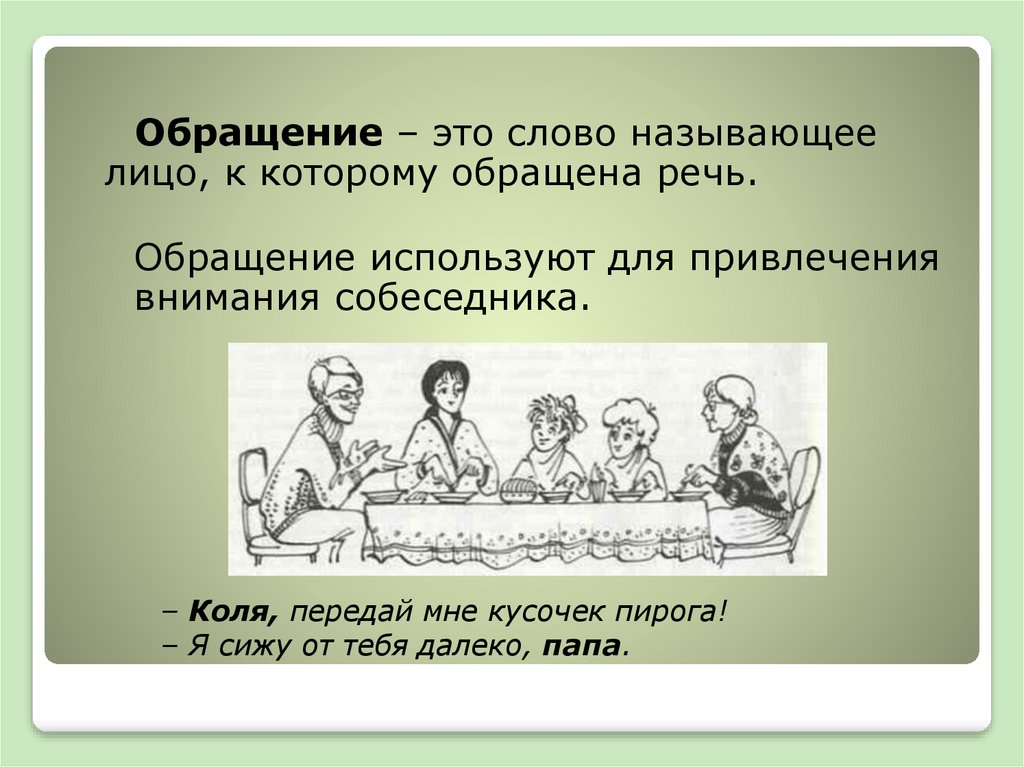 Обращение – это слово называющеелицо, к которому обращена речь.