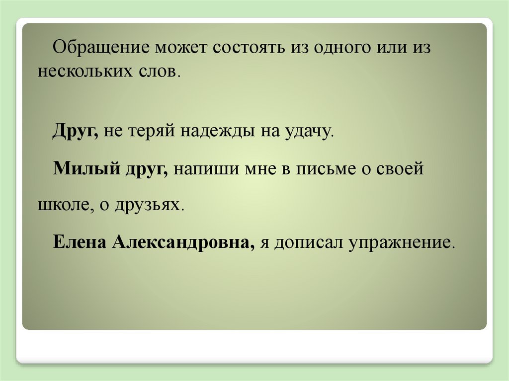 Обращение может состоять из одного или изнескольких слов.