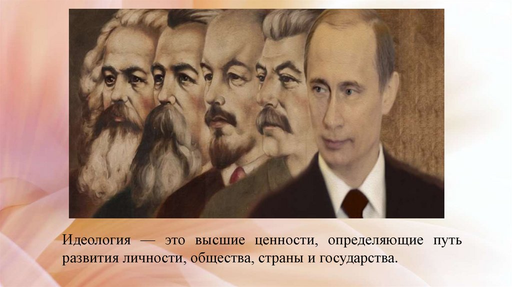 Идеология — это высшие ценности, определяющие путьразвития личности, общества, страны и государства.