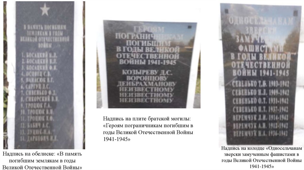 Надпись на плите братской могилы:«Героям пограничникам погибшим в