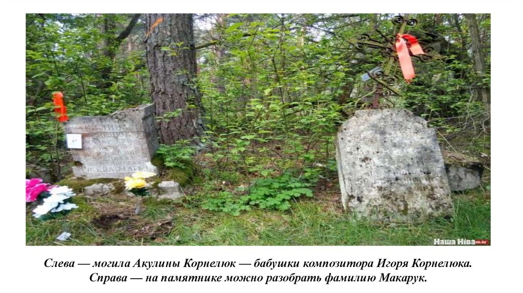 Слева — могила Акулины Корнелюк — бабушки композитора Игоря Корнелюка.Справа — на памятнике можно разобрать фамилию Макарук.