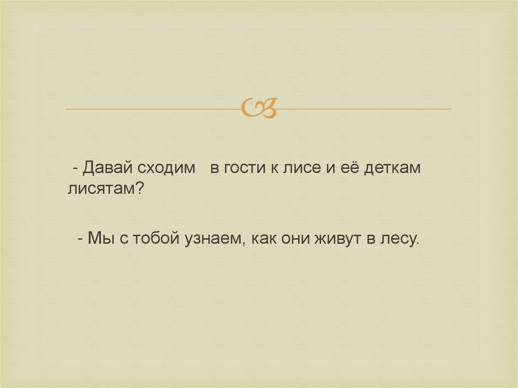 - Давай сходим в гости к лисе и её деткамлисятам?