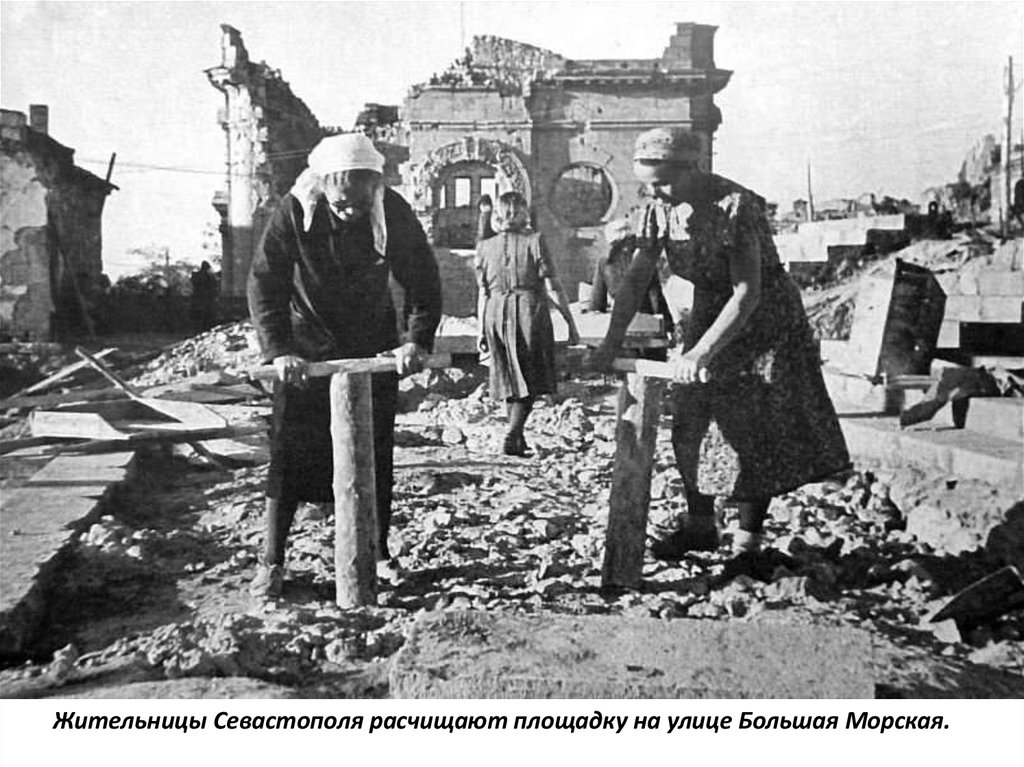 Моряки ЧФ ведут восстановительные работы на Малаховом кургане.