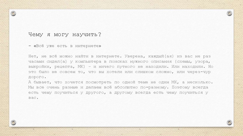 выкройки, рецепта, МК) – и ничего путного не находили. Или находили. Но