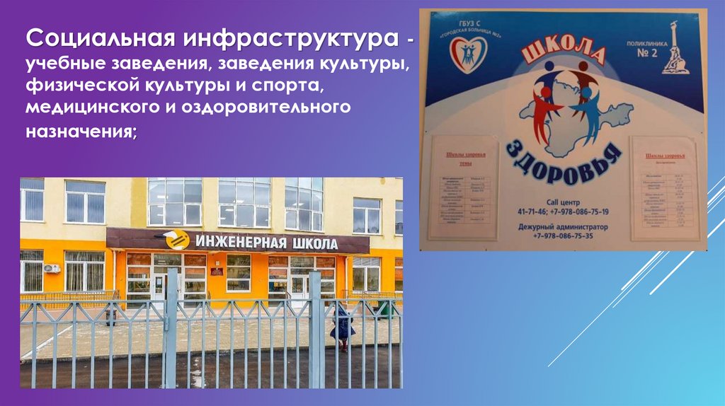 Социальная инфраструктура учебные заведения, заведения культуры,физической культуры и спорта,