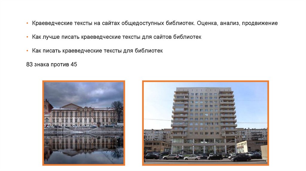 • Краеведческие тексты на сайтах общедоступных библиотек. Оценка, анализ, продвижение• Как лучше писать краеведческие тексты для сайтов библиотек