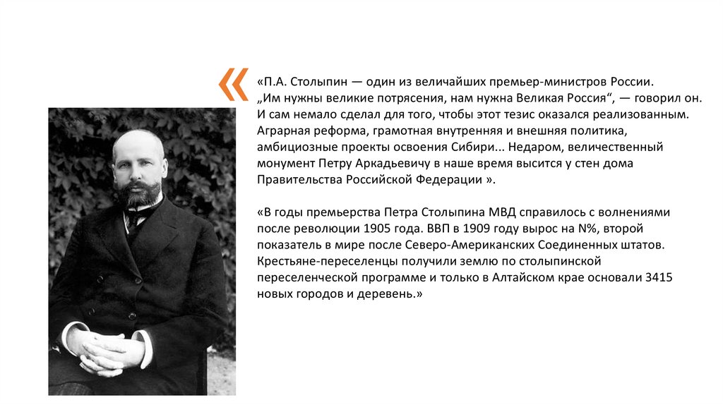 ««П.А. Столыпин — один из величайших премьер-министров России.