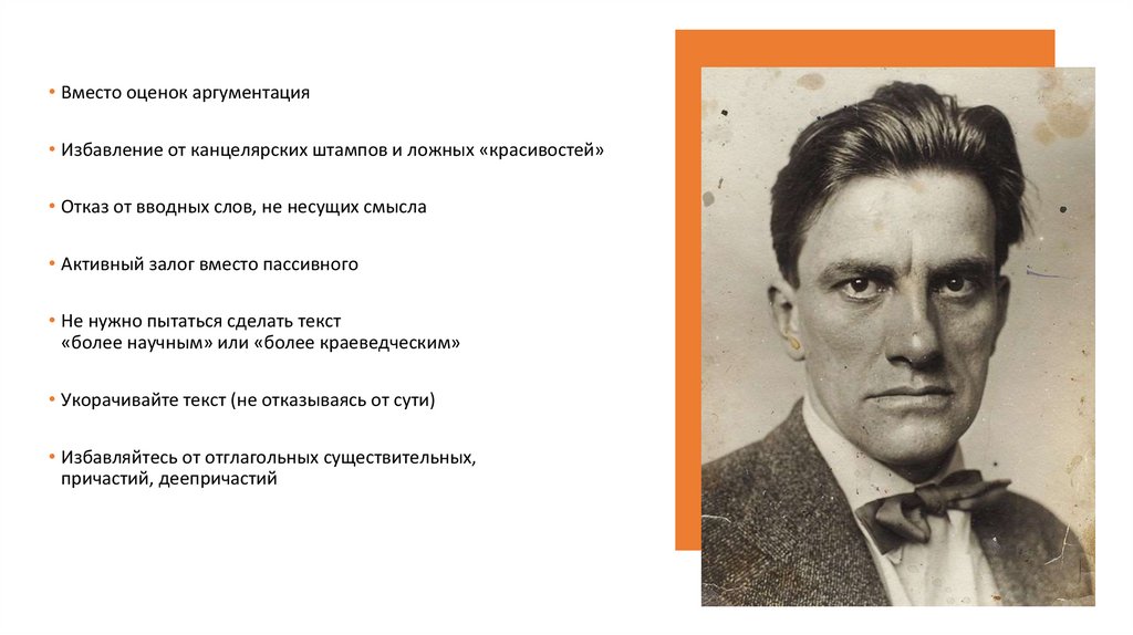 • Вместо оценок аргументация• Избавление от канцелярских штампов и ложных «красивостей»
