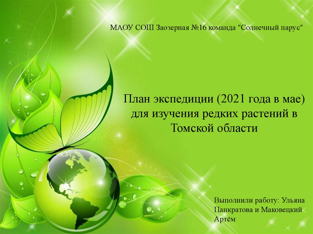 МАОУ СОШ Заозерная №16 команда "Солнечный парус"План экспедиции (2021 года в мае)