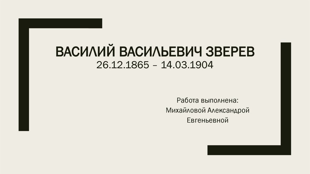 Василий Васильевич зверев 26.12.1865 – 14.03.1904