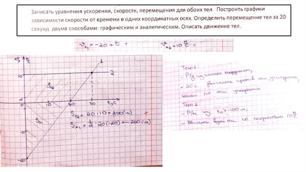 3. Определить перемещения тел (Sx) за первые 10 секунд движения двумя способами: графическим и