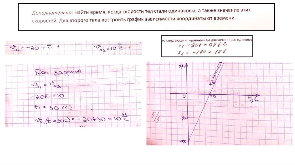 5. Найти время, когда скорости тел стали одинаковыми, и определить значение этой скорости.