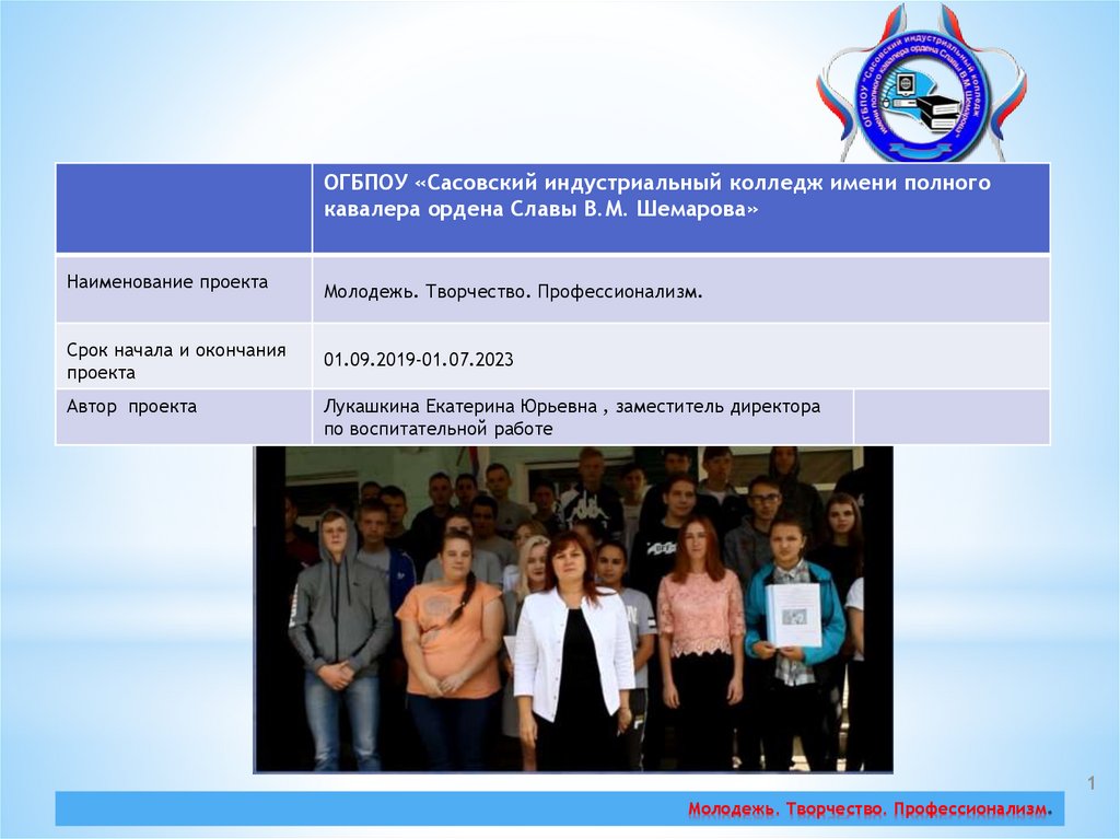 полного кавалера ордена Славы В.М. Шемарова» через реализацию проекта модели профессионального воспитания