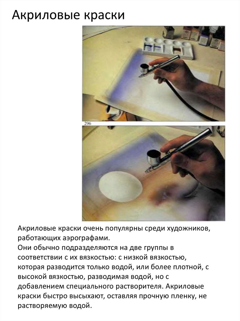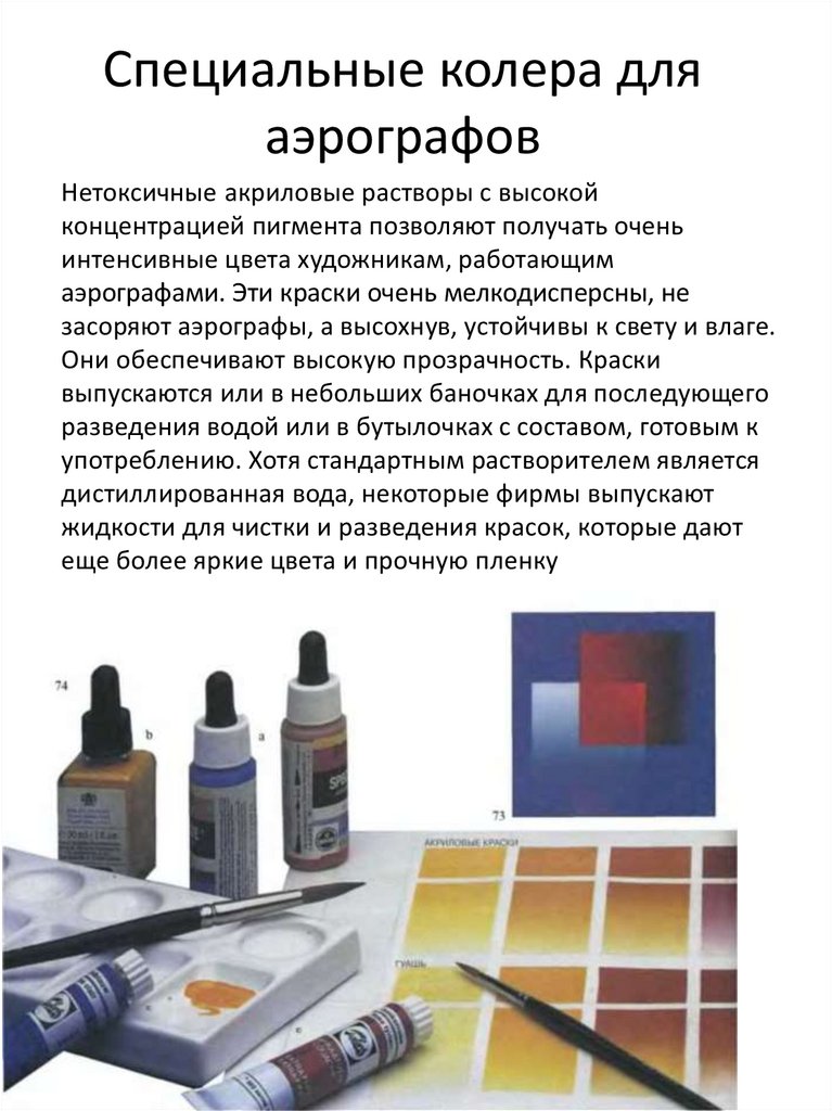 аэрографами. Эти краски очень мелкодисперсны, не