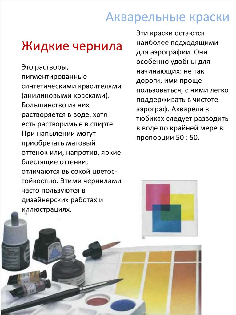 засоряют аэрографы, а высохнув, устойчивы к свету и влаге.