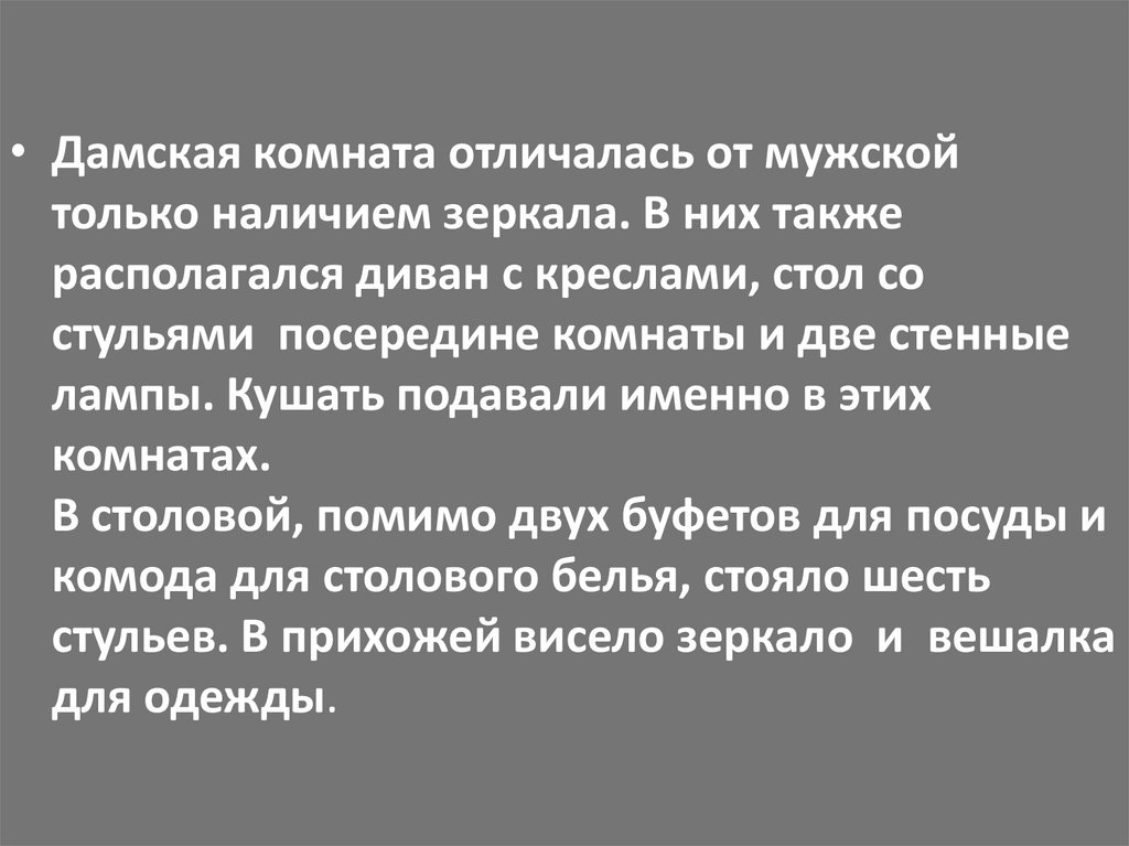 • Дамская комната отличалась от мужскойтолько наличием зеркала. В них также