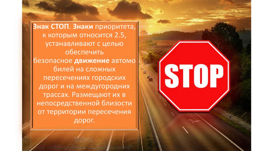 Знак СТОП. Знаки приоритета,к которым относится 2.5,