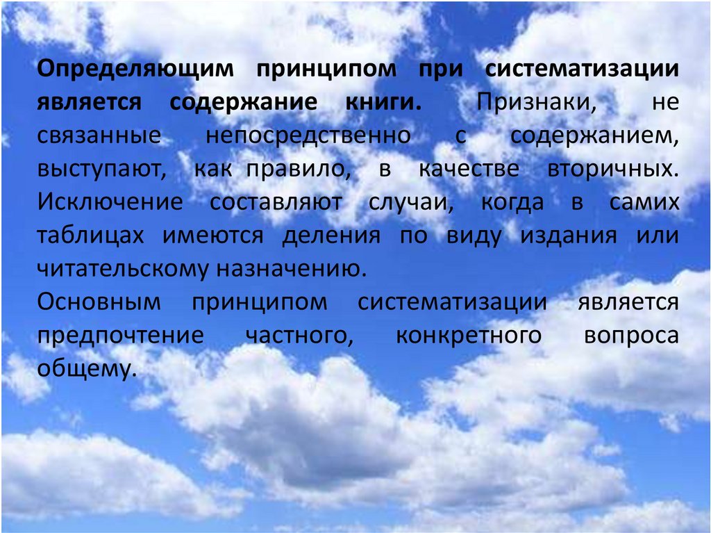 Определяющим принципом при систематизацииявляется содержание книги.