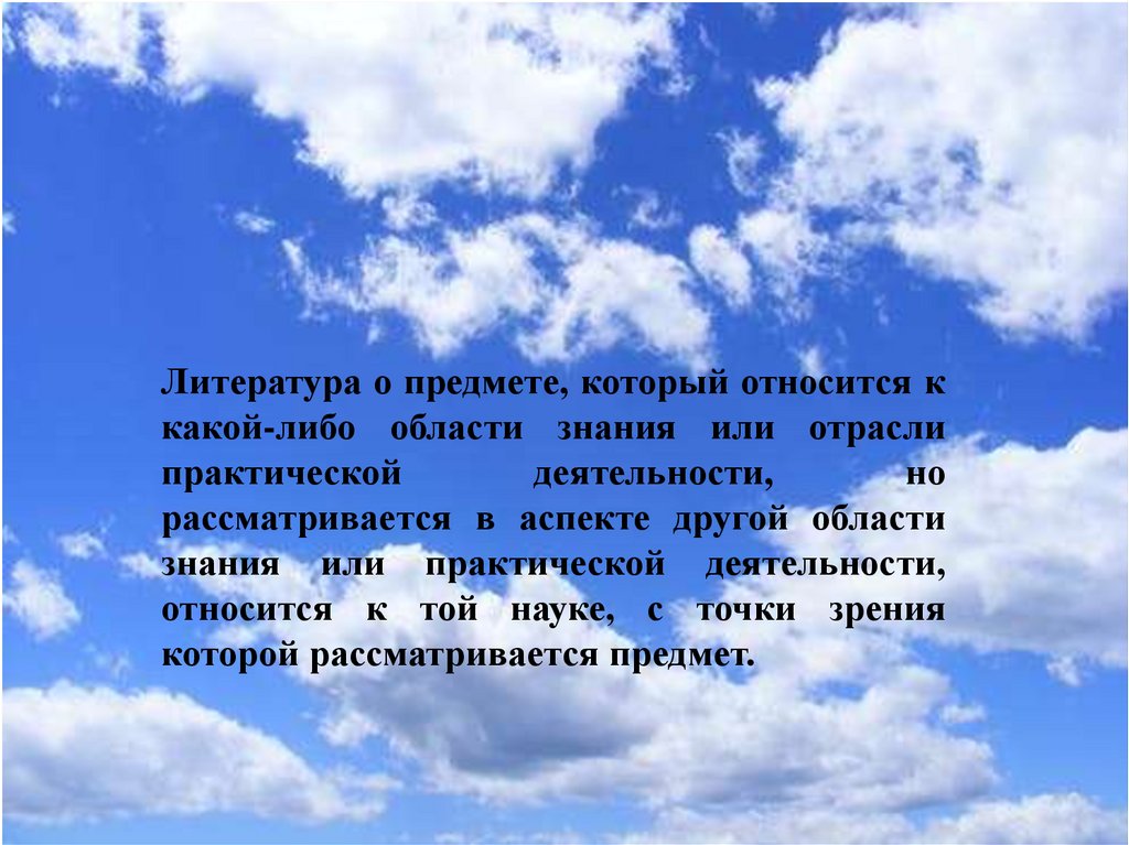 Литература о предмете, который относится ккакой-либо области знания или отрасли