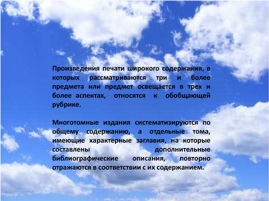 общему содержанию, а отдельные тома,