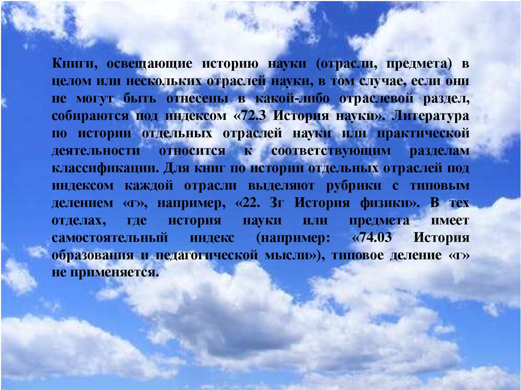 классификации. Для книг по истории отдельных отраслей под
