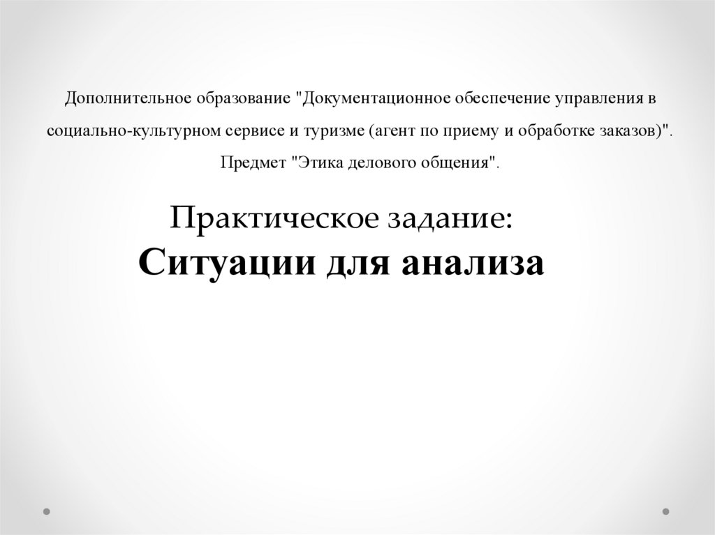 Дополнительное образование "Документационное обеспечение управления всоциально-культурном сервисе и туризме (агент по приему и обработке заказов)".