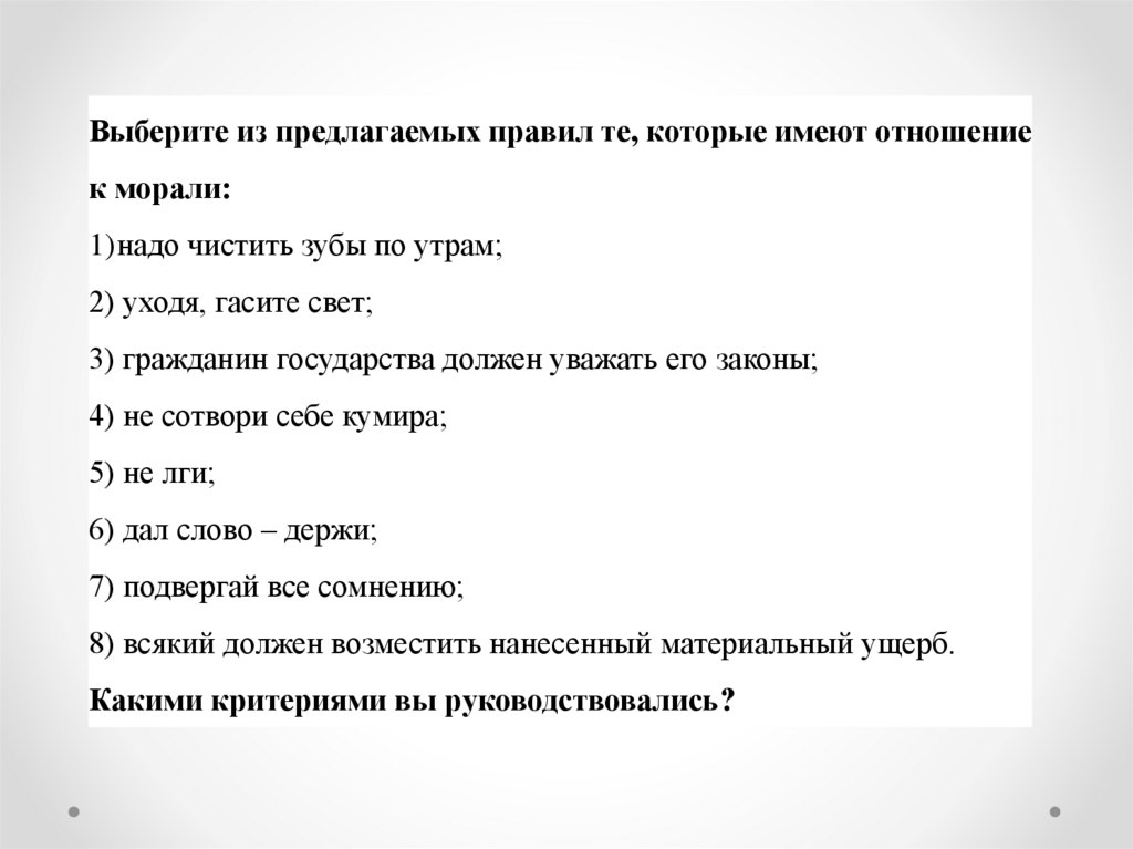 Выберите из предлагаемых правил те, которые имеют отношениек морали: