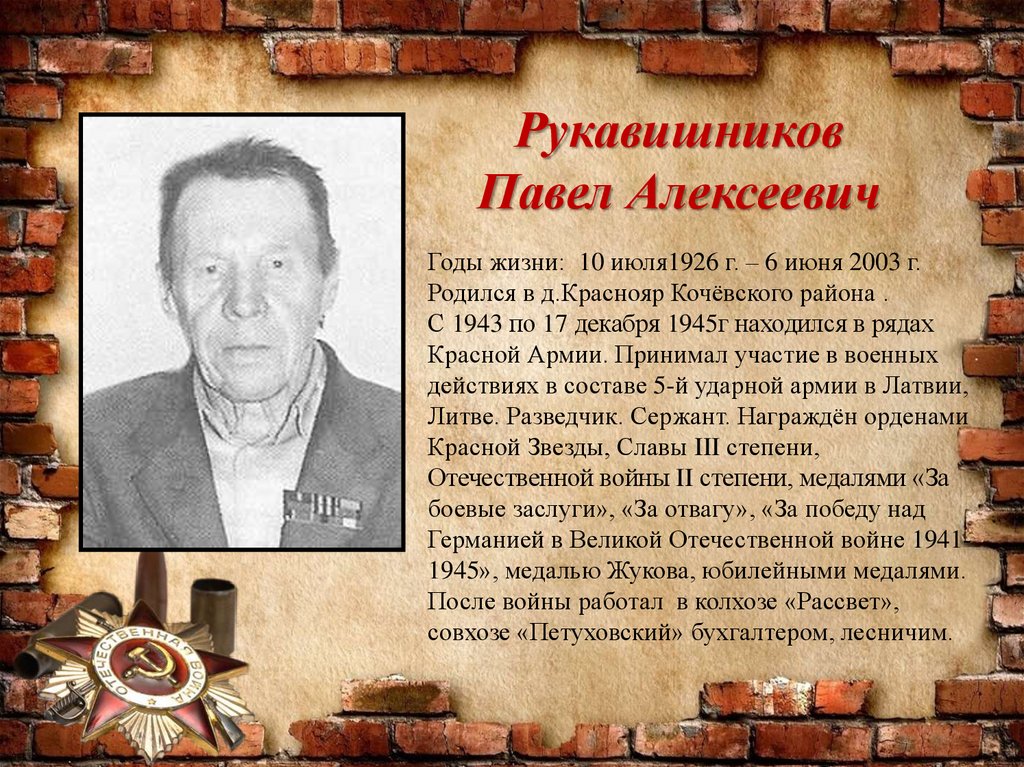 Отечественной войны II степени, медалями «За