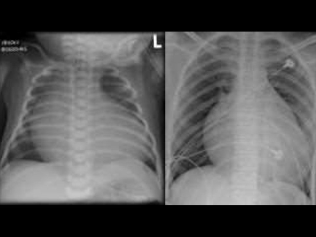 • В тяжелых случаях у новорожденных отмечается СН, часто с выраженным цианозом.