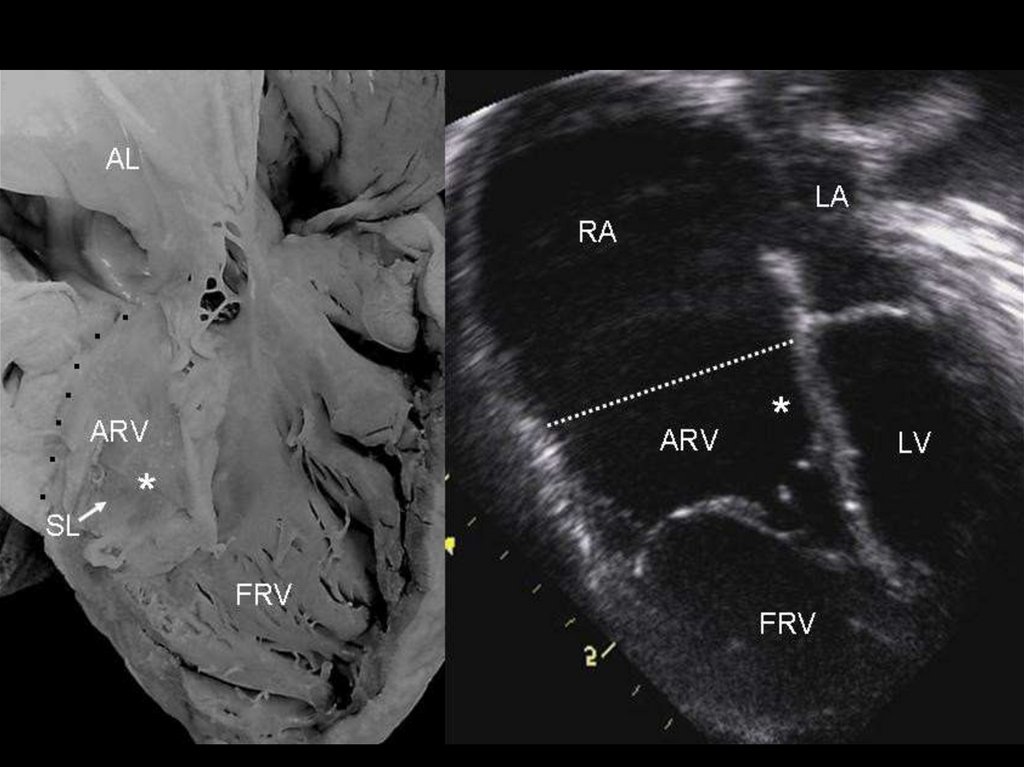 дисплазия, деформация, фиброз и значительное смещение створок в полость правого желудочка,