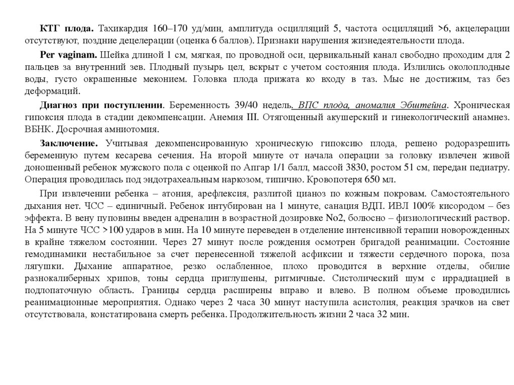 Заключение. Учитывая декомпенсированную хроническую гипоксию плода, решено родоразрешить