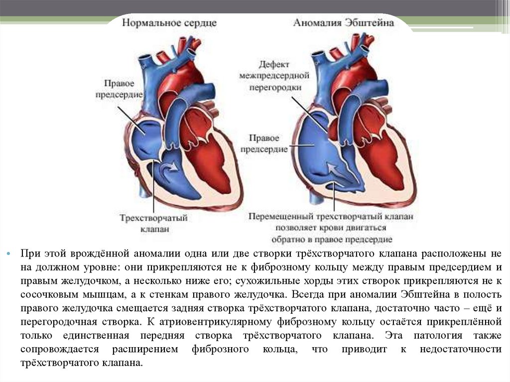 нарушения функции сердца при аномалии Эбштейна, еще внутриутробно, приводящие