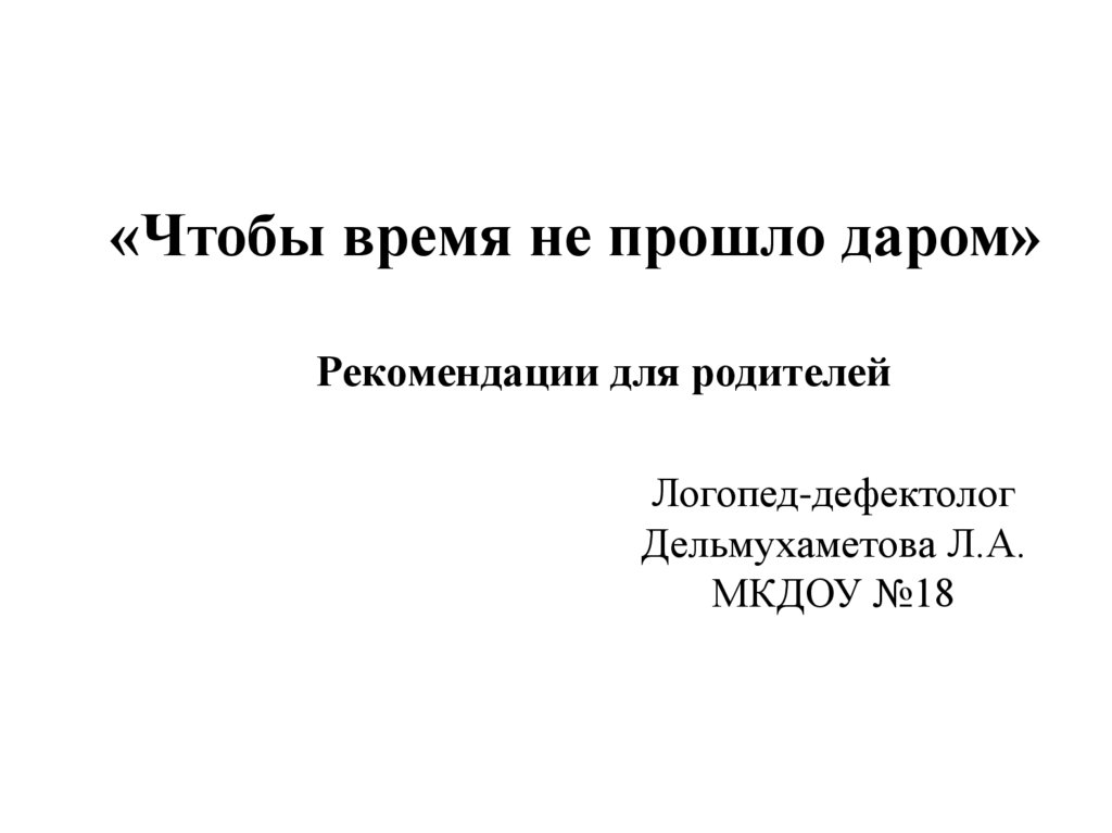 «Чтобы время не прошло даром»Рекомендации для родителей