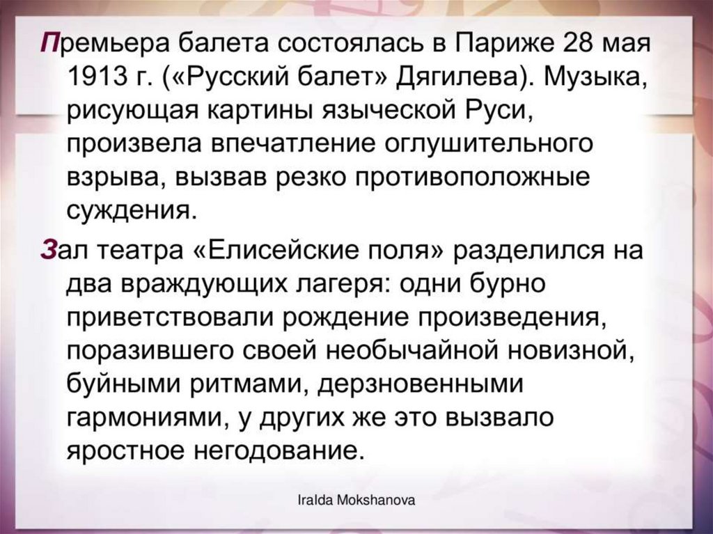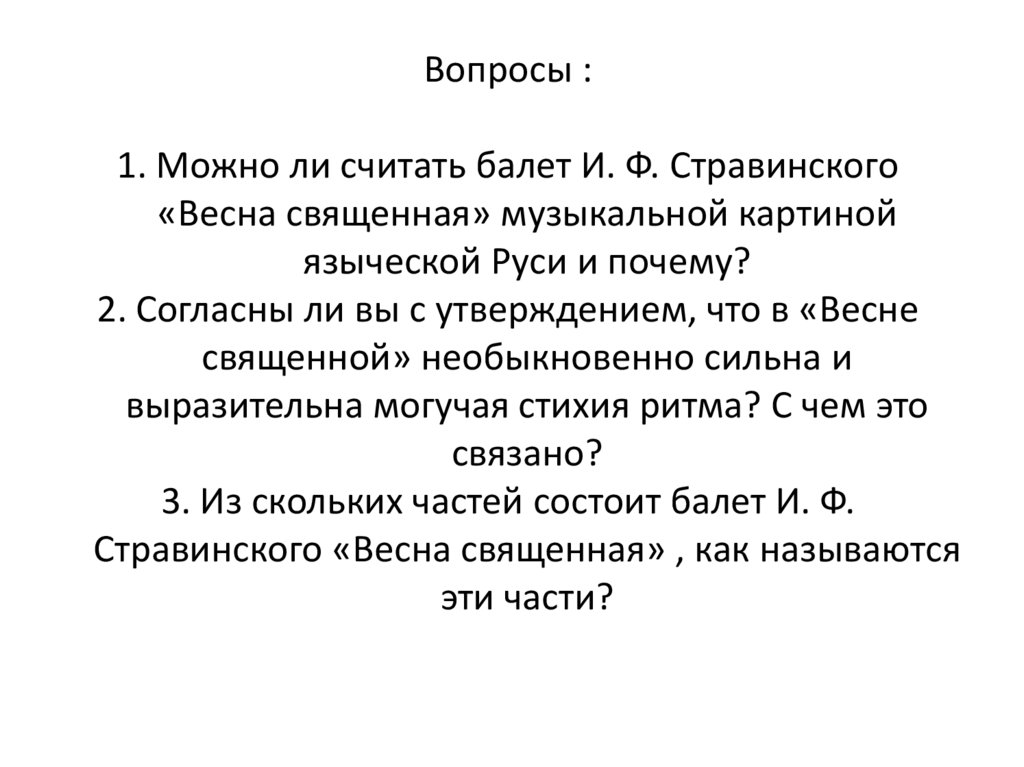 Вопросы :1. Можно ли считать балет И. Ф. Стравинского