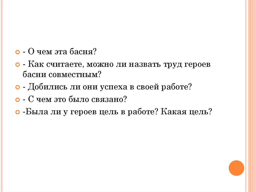 - О чем эта басня?- Как считаете, можно ли назвать труд героев