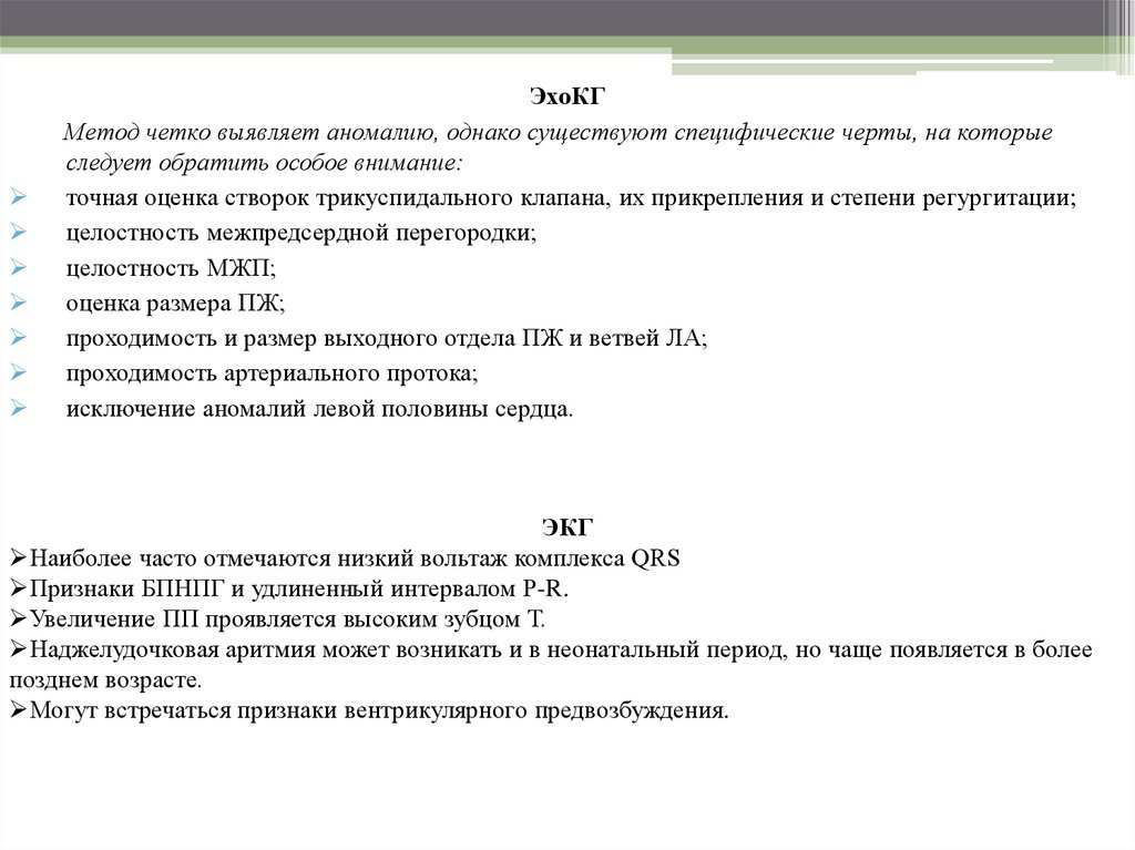 • Исследования D.Roberson N.Silverman (1989) свидетельствуют о том, что аномалияЭбштейна - самый частый порок, диагностируемый внутриутробно. Выраженные