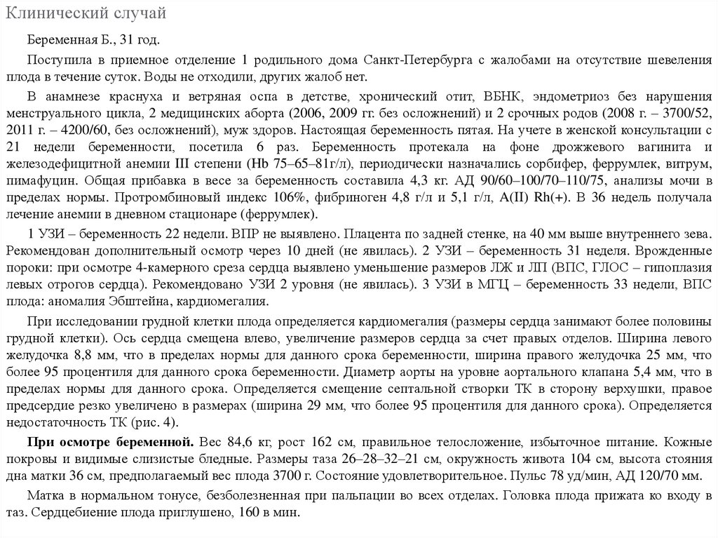 Акушерство/ В помощь практическому врачу/Клинический случай/ Тяжелая аномалия Эбштейна у