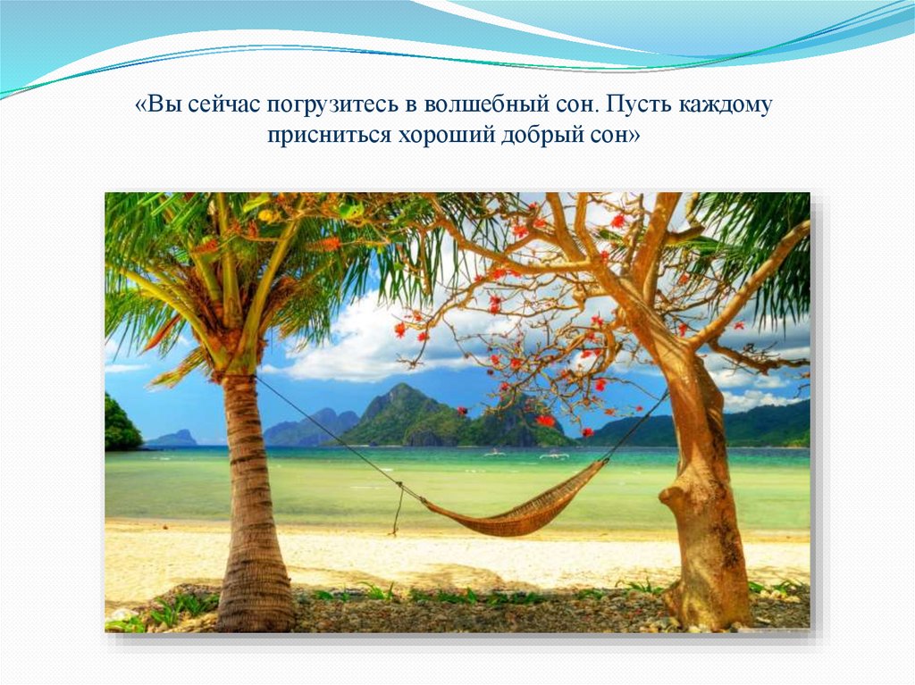 «Вы сейчас погрузитесь в волшебный сон. Пусть каждомуприсниться хороший добрый сон»
