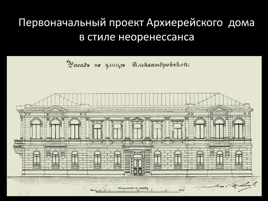 Первоначальный проект Архиерейского домав стиле неоренессанса