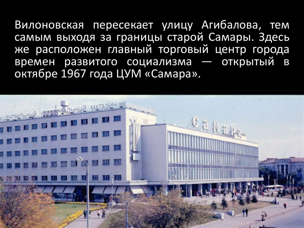 Вилоновская пересекает улицу Агибалова, темсамым выходя за границы старой Самары. Здесь