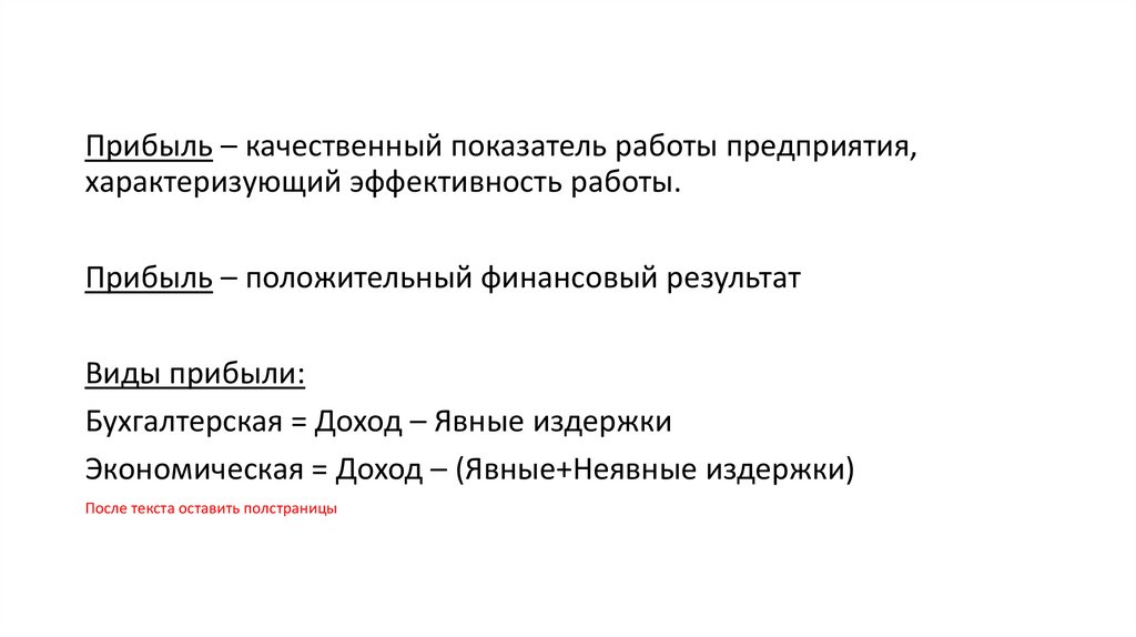 Прибыль – качественный показатель работы предприятия,характеризующий эффективность работы.
