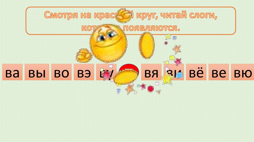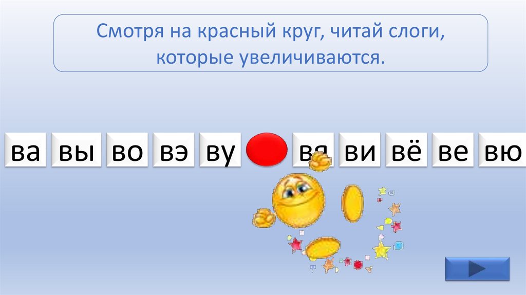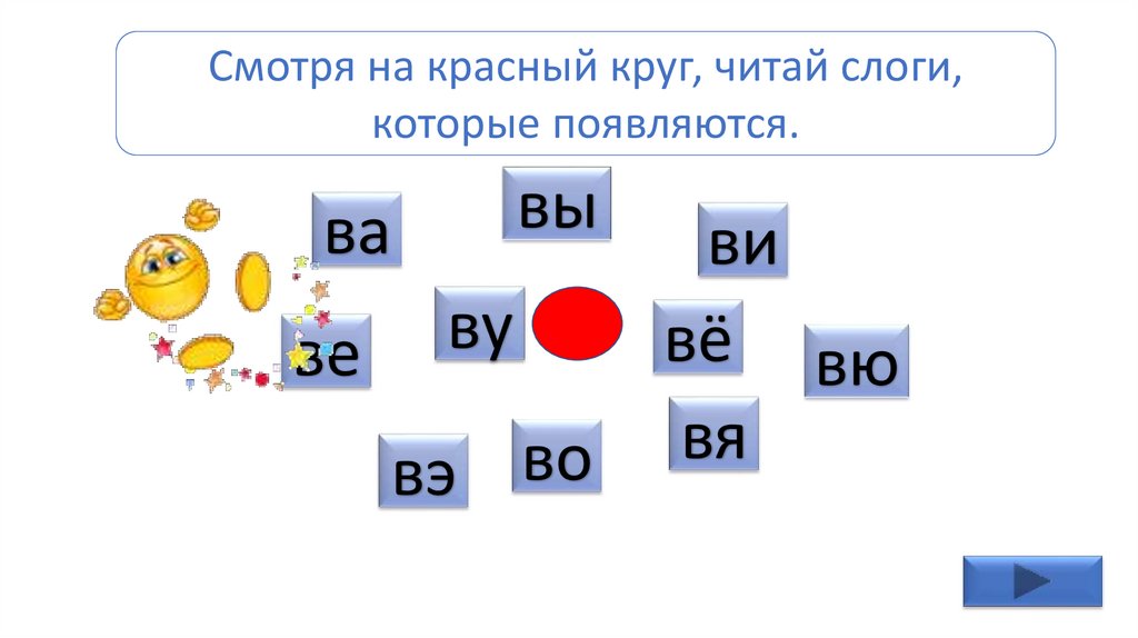 Смотря на красный круг, читай слоги,которые появляются.